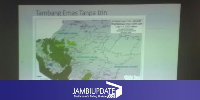 JAMBIUPDATE.CO, JAMBI - Komonitas Konservasi Indonesia (KKI) Warsi mencatat, luasan kawasan Penambangan Emas Tanpa Izin (PETI) di Provinsi Jambi semaki meluas. Luasnya saat ini lebih kurang sekitar 27, 822 Hektar.