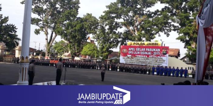 Untuk mengamankan kegiatan ini, Polda Jambi sore ini (22/12) melaksanakan Apel Gelar Pasukan Operasi Lilin Siginjai 2017. Upacara digelar di lapangan hitam Mapolda Jambi dipimpin Kapolda Jambi, Brigjen Pol Priyo Widyanto.