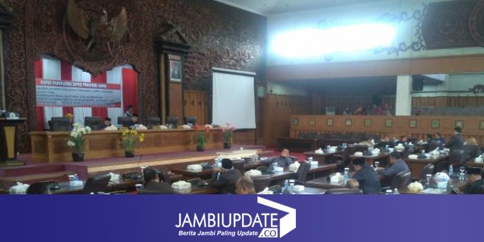 JAMBIUPDATE.CO, JAMBI - DPRD Provinsi Jambi menggelar rapat Paripurna dengan agenda Pengambilan Keputusan Dewan Terhadap 4 Ranperda Provinsi Jambi dan Tindak Lanjut Hasil Evaluasi Mendagri terhadap Ranperda APBD tahun 2018 dan Ranperda Provinsi Jambi  terhadap Penjabaran APBD 2018.