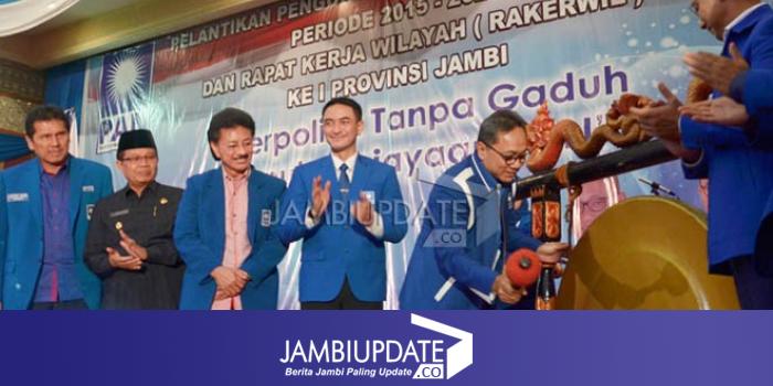 Ketua Umum DPP PAN, Zulkifli Hasan ketika melantik pengurus DPW PAN Jambi. Hadapi Pilwako Jambi, dukungan PAN belum rampung di DPP.