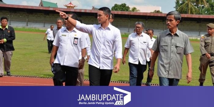 Zola didampingi Ketua KONI Provinsi Jambi, Indra Armendaris, SH, Asisten I Sekda Provinsi Jambi, H.Apani Saharudin, serta Kepala OPD Provinsi Jambi meninjau tribun penonton termasuk mengecek kondisi lapangan.