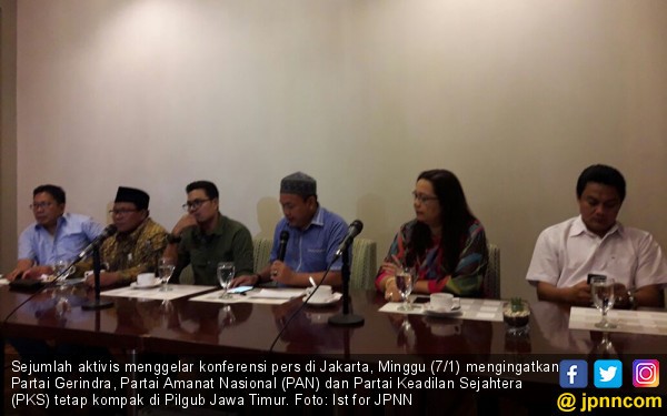JAMBIUPDATE.CO, JAKARTA - Sejumlah tokoh dan aktivis mengingatkan Partai Gerindra, Partai Amanat Nasional (PAN) dan Partai Keadilan Sejahtera (PKS) tetap kompak di Pilgub Jawa Timur 2018.