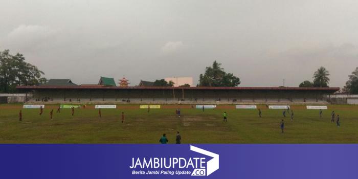 Selain itu, ratusan pendukung kedua team yang bertanding memenuhi tribun penonton Tri Lomba Juang Koni Jambi.