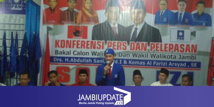 JAMBIUPDATE.CO, JAMBI - Pasangan Abdullah Sani-Kemas Al Farizi segera resmi mengantongi Surat Keputusan (SK) dukungan Partai Amanat Nasional (PAN) di Pilwako Jambi 2018.