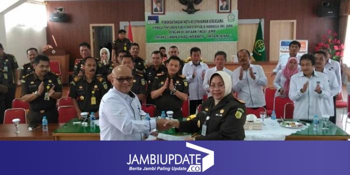 JAMBIUPDATE,CO-JAMBI- Program dialog interaktif bertajuk "jaksa menyapa" resmi disepakati oleh Kejaksaan Agung RI dengan Radio Republik Indonesia (RRI) . Ini setelah penandatanganan nota kesepakatan antara Kejati Provinsi di seluruh Indonesia dengan RRI Indonesia di berbagai Provinsi.
