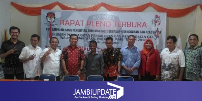 JAMBIUPDATE.CO, JAMBI- Komisi Pemilihan Umum (KPU) Kota Jambi menggelar Pleno terbuka bersama tim penghubung pasangan calon, sore ini (18/1). Ini terkait penyampaian hasil penelitian administrasi terhadap kelengkapan dan keabsahan dokumen persyaratan pencalonan dan persyaratan calon Walikota dan Wakil Walikota Jambi 2018.