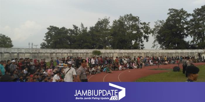 Pantauan dilokasi, Stadion Tri Lomba Juang (KONI) Jambi domana pertandingan itu berlangsung pun dipadati para penonton.