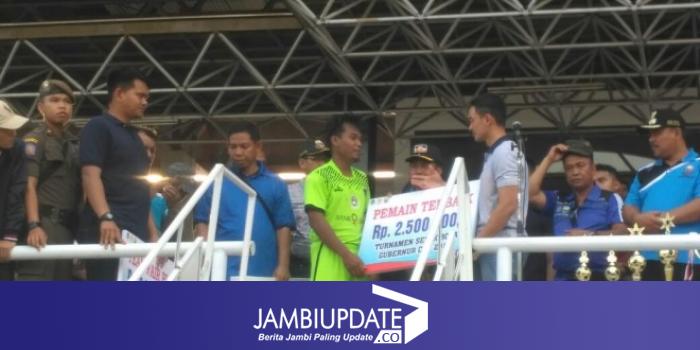 Kemudian untuk pemain terbaik Gubernur CUP 2018 adalah Septian nomer punggung 16 dari PS Batanghari.