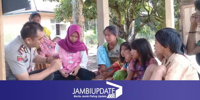 JAMBIUPDATE.CO, JAMBI - Kapolsek Air Hitam, Iptu CM Sitorus mengajari anak-anak Suku Anak Dalam (SAD) yang bermukim di wilayah Desa Jernih Kecamatan Air Hitam Kabupaten Sarolangun membaca, menulis dan berhitung.
