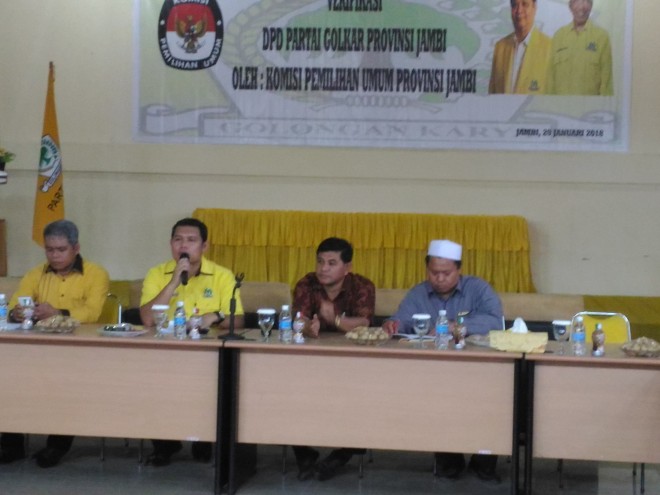 JAMBIUPDATE.CO, JAMBI- Verifikasi Faktual (Verfak) terhadap 12 partai politik peserta Pemilu 2014 terus dilakukan. Sore ini, (29/1) verifikasi dilakukan terhadap DPD I Golkar Provinsi Jambi.