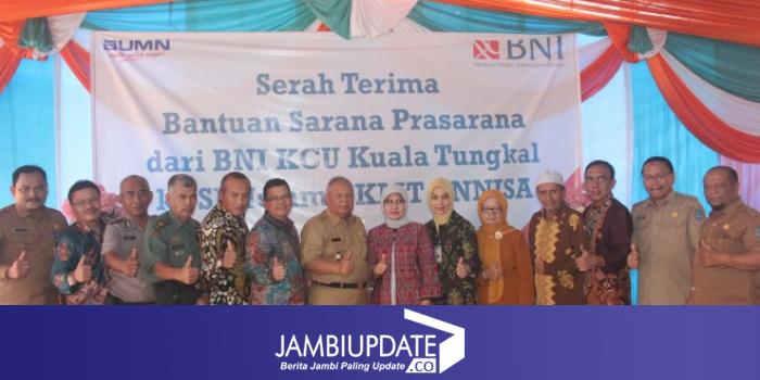 JAMBIUPDATE. CO , - Kuala Tungkal, 30 Januari 2018, PT Bank Negara Indonesia (Persero) Tbk atau BNI mengunjungi Kuala Tungkal, Tanjung Jabung Barat, Jambi, untuk menyerahkan bantuan Corporate Social Responsibility (CSR) pada Sekolah Dasar Islam Badan Kontak Majelis Taklim (BKMT) Annisa.