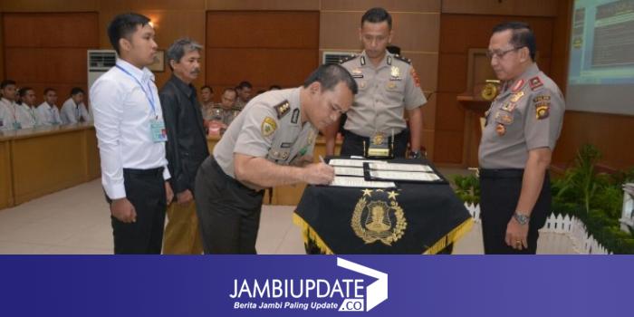JAMBIUPDATE.CO, JAMBI - Kepolisian Daerah Jambi (Polda Jambi) Sabtu 03 Februari 2018 pukul 08.00 WIB, Polda Jambi melaksanakan kegiatan Penandtangan pakta integritas yang di laksanakan di Balai Bhayangkara Siginjai Polda Jambi.