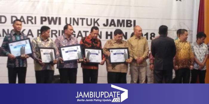JAMBIUPDATE.CO, JAMBI - Dalam rangka peringatan Hari Pers Nasional (HPN) 2018, Persatuan Wartawan Indonesia ( PWI)) Jambi memberikan penghargaan untuk Jambi.