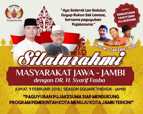 JAMBIUPDATE.CO, JAMBI-Masyarakat Jawa-Jambi yang tergabung dalam Paguyuban Putera Jawa Kelahiran Sumatera (Pujakesuma) bakal menggelar sillaturrahmi akbar sekaligus pengukuhan Paguyuban Pujakesuma pada 9 Februari mendatang.