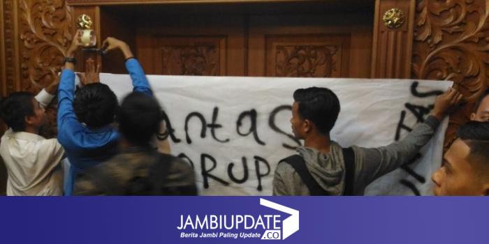 Pantauan dilapangan ruang kerja Gubernur Jambi juga disegel menggunakan spanduk yang bertuliskan "Berantas Korupsi Menuju Jambi Tuntas". (Nur)