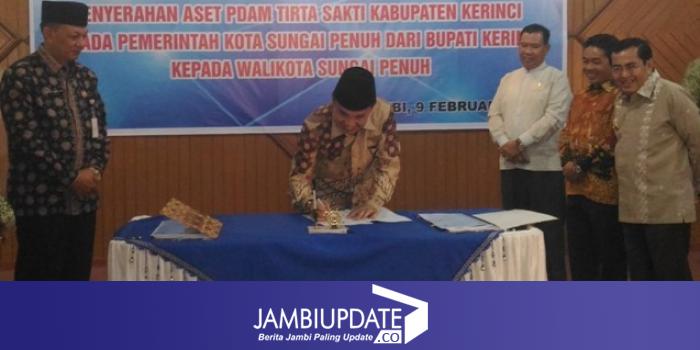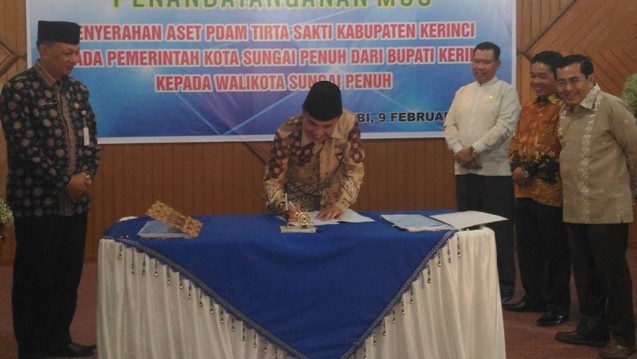 Penyerahan ditandai dengan penandatanganan MOU penyerahan aset PDAM Tirta Sakti dari Kabupaten Kerinci kepada pemerintah Sungai Penuh.