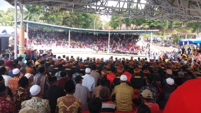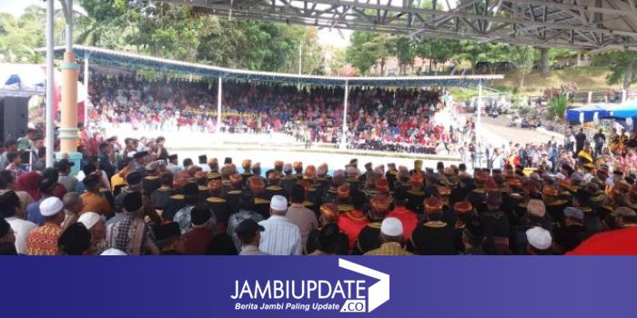 JAMBIUPDATE.CO, KERINCI - Ribuan masyarakat Kabupaten Kerinci tumpah ruah di lokasi acara Musyawarah Besar Depati IV Alam Kerinci dan pengukuhan tim pemenangan Zainal Abidin - Arsal Apri di Dermaga Danau Kerinci, Minggu (11/02) sore.