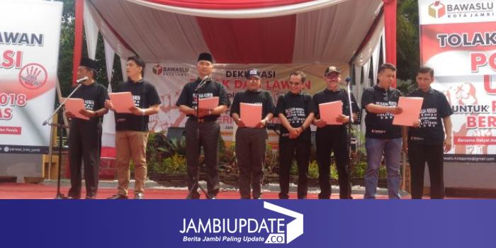 Dimana poin-poin deklarasi lawan politik uang dan lawan politik sara yang dibacakan, pertama mengawal pemilihan Walikota dan Wakil Walikota Jambi Tahun 2018 dari praktek politik uang dan SARA karena merupakan ancaman besar bagi demokrasi dan kedaulatan rakyat.