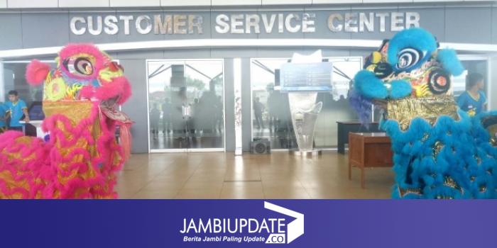 Pada momen Imlek ini, managemen Bandara Sultan Thaha Jambi juga memberikan hiburan atraksi barongsai untuk seluruh pengunjung. (yni)