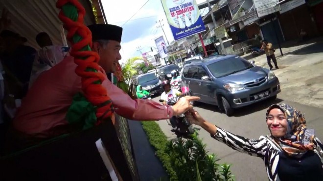 Terbukti, selain disesaki simpatisan dan pendukung, saat menggelar pawai berkeliling Kota Jambi. Warga juga secara spontan memberikan bunga kepada Fasha-Maulana, menunjukan apresiasi kepada pasangan ini.