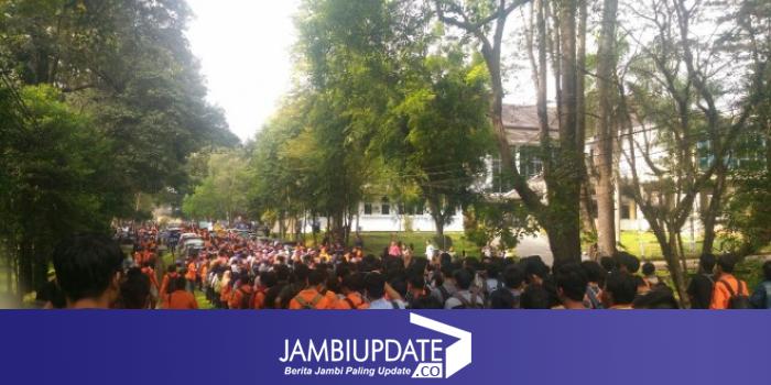 JAMBIUPDATE.CO, JAMBI- Aksi unjuk rasa yang dilakukan oleh ribuan mahasiswa Universitas Jambi (Unja) pagi ini (19/2) masih berlangsung.