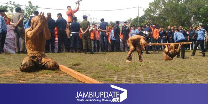 JAMBIUPDATE.CO, JAMBI- Selain melaku kan orasi penolakan parkir berbayar, aksi unjuk rasa mahasiwa Unja mengelar treatikal.