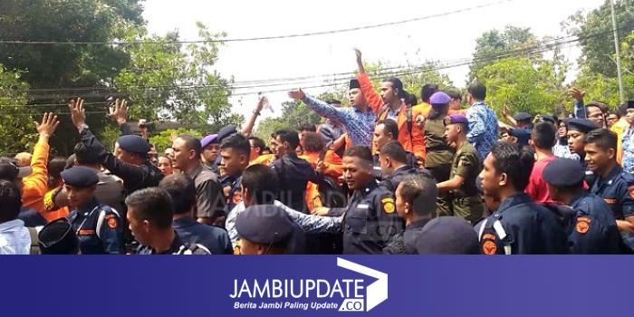 Aksi unjuk rasa di depan gedung Rektor unja Senin (19/2) sempat ricuh antara mahasiswa dan security kampus.