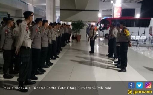 JAMBIUPDATE.CO, JAKARTA - Ratusan personel kepolisian disebar di Bandara Soekarno Hatta, Cengkareng, Tangerang, Banten.