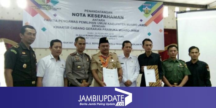Dalam Sambutannya, Wakil Bupati mengucapkan terima kasih kepada Pengawas pemihan Umum kabupaten muaro jambi atas terlakasananya penandatanganan nota kesepahaman antara Panwaskan dan kwartir cabang gerakan pramuka muaro jambi.