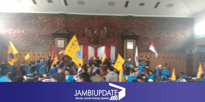 JAMBIUPDATE.CO, JAMBI - Tak kunjung ditemui Ketua DPRD Provinsi Jambi, ratusan masa aksi yang tergabung dalam Pergerakan Mahasiswa Islam Indonesia (PMII) memaksa masuk Gedung DPRD Provinsi Jambi.