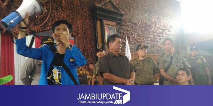 Masa unjuk rasa meminta Ketua DPRD Provinsi Jambi, Cornelis Buston menemui mereka untuk melakukan audiensi.