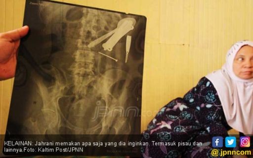 Di antaranya, sendok, kantong plastik, engsel, paku, hingga pisau. Jumrah, ibunda Jahrani, hanya bisa pasrah melihat kondisi anaknya.