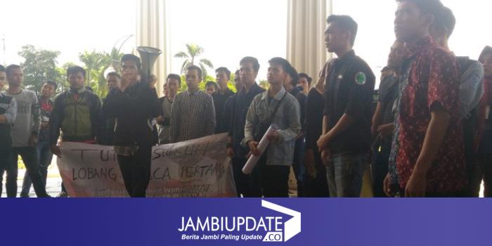 JAMBIUPDATE.CO, JAMBI Puluhan mahasiswa yang tergabung dalam Aliansi Mahasiswa Peduli Lingkungan (Ampel) Jumat (9/3) menggelar aksi unjuk rasa di Kantor Gubernur Jambi.