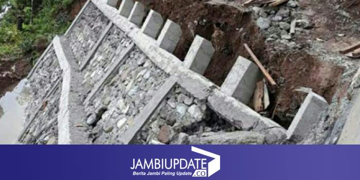 JAMBIUPDATE.CO, KERINCI - Curah hujan yang cukup tinggi terjadi di kabupaten Kerinci, beberapa minggu terakhir ini. Selain mengakibatkan banjir, juga membuat infrastruktur jalan rusak dan longsor. Seperti yang terjadi di jalan Desa Sungai Jernih, kecamatan Gunung Tujuh, tembok berada di penggir jalan yang masih dalam pengerjaan ambruk.
