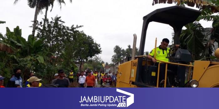 Saat goro berlangsung, Fasha terlihat mengoperasikan langsung alat berat greader untuk mempercepat merapikan jalan di salah satu perkampungan warga.