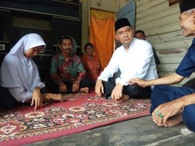 Fasha juga menjelaskan, dirinya mengunjungi seorang anak di Kelurahan Eka Jaya yang masih kelas 2 SMP yang menderita cacat sejak lahir. Anak ini luar biasa meski kondisi seperti ini namun tetap semangat sekolah, ujar Fasha.