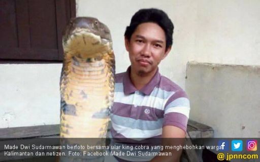 JAMBIUPDATE.CO, KUTAI KARTANEGARA - Made Dwi Sudarmawan membuat warga Kalimantan dan netizen geger gara-gara mengunggah beberapa foto ular king cobra.
