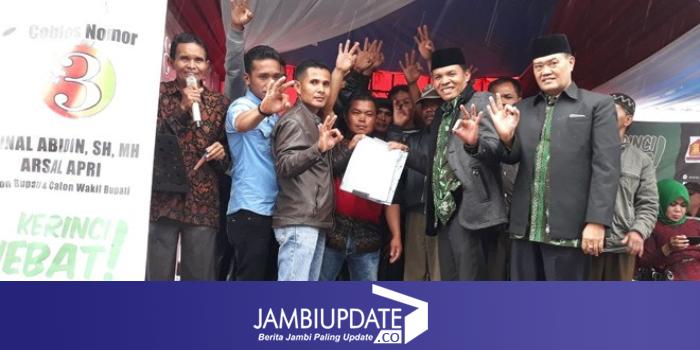 Usai membacakan pernyataan sikap yang sudah ditandatangani tersebut, secara langsung diserahkan kepada pasangan Zainal Abidin dan Arsal Apri.