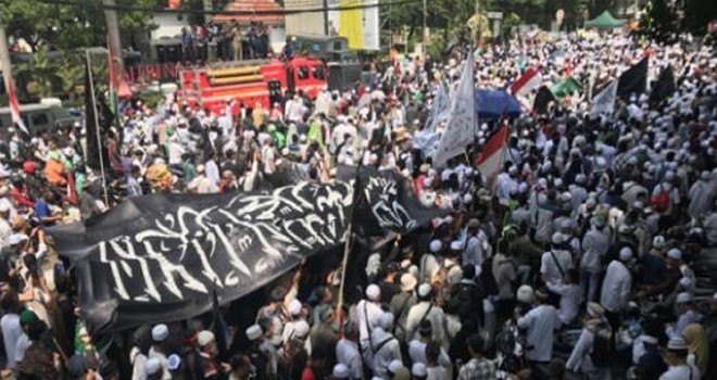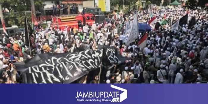 Lautan manusia pun terlihat sepanjang Jalan Medan Merdeka Timur. Massa awalnya berjalan kaki dari Masjid Istiqlal. Mereka berjalan kaki usai menunaikan salat Jumat.