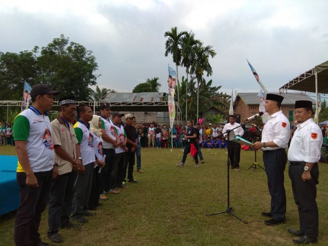 Naskah pengukuhan dibacakan langsung oleh Cawako Sy Fasha sore ini (7/4/2018) di lokasi acara di lapangan sepakbola Kelurahan Tanjung Johor, Kecamatan Pelayangan dengan disaksikan ribuan anggota tim lainnya.