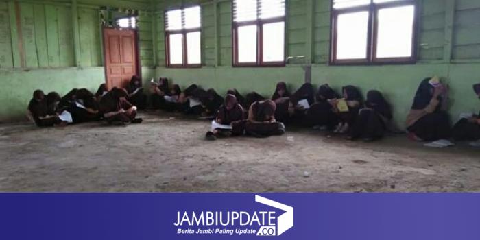 JAMBIUPDATE.CO, MERANGIN - Siswa Madrasah Tsanawiyah (MTs) Swasta M Amin Rajo Tiangso, Desa Talang Tembago, Kecamatan Jangkat Timur belum bisa menikmati pendidikan dengan layak. Buktinya mereka harus duduk di lantai kelas ketika mengikuti proses belajar mengajar.