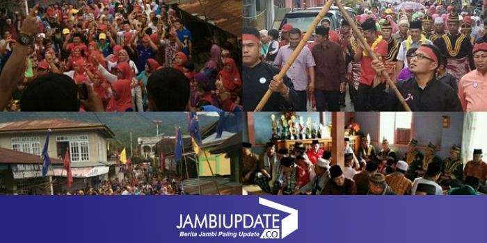 JAMBIUPDTAE.CO, KERINCI Calon Bupati dan Wakil Bupati Kerinci nomor urut satu, Monadi-Edison, Minggu (8/4), diarak keliling kampung, di tujuh desa Pulau Tengah, Kecamatan Keliling Danau.