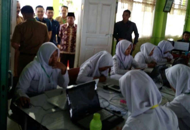 JAMBIUPDATE.CO, SUNGAIPENUH- Ketua DPRD Kota Sungai Penuh Fikar Azami.SH.MH meninjau langsung pelaksanaan Ujian Nasional berbasis komputer Selasa 10/4/18.