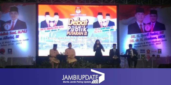 JAMBIUPDATE.CO, JAMBI - Debat publik Calon Walikota dan Wakil Walikota Jambi putaran kedua, bertempat di Abadi Convention Center (ACC), Jumat malam (20/4) berjalan lancar dan sukses.