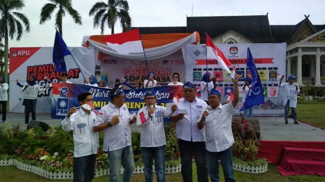 Pada kesempatan itu, partai berlambangkan matahari biru itu menampilkan kolaborasi syair, lagu dan tarian dengan personil pendukung sebanyak 15 orang.