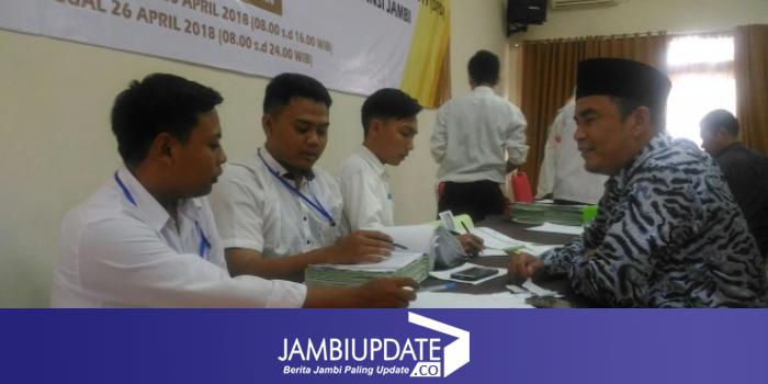 Komisioner KPU Provinsi Jambi, Nuraida Fitri Habi mengatakan jika persyaratan 26 orang yang menyerahkan dukungan ini telah diterima. Berkas itu akan dilakukan pengecekan pada tahapan penelitian administasi sepuluh hari kedepan. Sudah ditutup, ada 26 orang yang berkasnya kita terima. Bekas itu akan kita lakukan penelitian administrasi, ujarnya, Jumat (27/4).