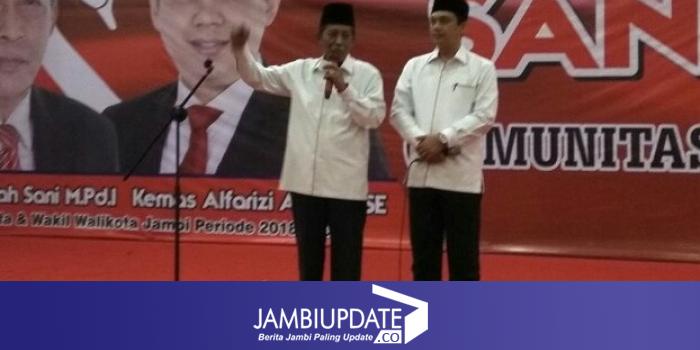 JAMBIUPDATE.CO, KOTAJAMBI - Due paslon Abdullah Sani dan Kemas Alfarizi (Sani-Izi), yang maju dalam Pilwako Jambi. Bakal mendapatkan dua dukungan dari dua parpol baru. Dihadapan para simpatisannya saat kegiatan Silahturahmi Tim Koalisi Kecamatan Danau Sipin, Sani mengungkapkan dua parpol yang akan ikut mendukung adalah dua parpol baru yang lolos dalam verifikasi Pemilu oleh KPU Pusat.