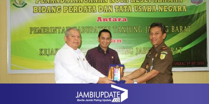 JAMBIUPDATE.CO, KUALATUNGKAL - Penandatanganan nota kesepahaman bersama (Memorandum of Understanding) antara Pemerintah Kabupaten Tanjung Jabung Barat dengan Kejaksaan Negeri Tanjung Jabung Barat tentang bantuan hukum, pertimbangan hukum dibidang hukum perdata dan tata usaha negara dilaksanakan di aula kantor kejaksaan negeri Kuala Tungkal, Rabu lalu.