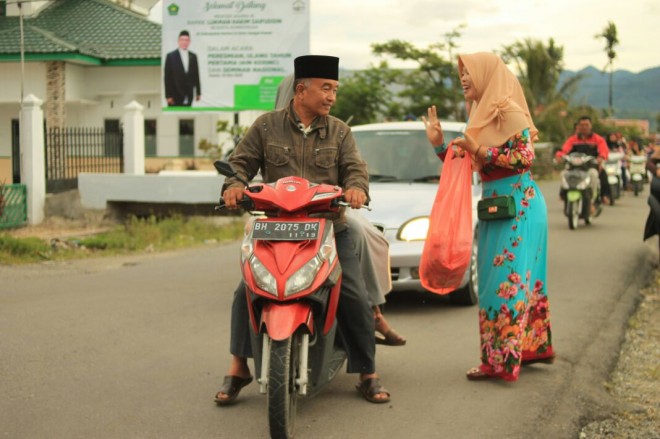"Selamat menunaikan ibadah puasa pak ibu, salam dari Pak Zainal dan Pak Arsal," ujar salah seorang anggota Garda Kerinci Hebat saat menyapa warga.
