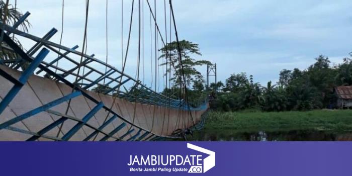 JAMBIUPDATE.CO, SENGETI - Masyarakat Desa Sponjen Kecamatan Kumpe Ilir Muarojambi sedang di timpa musibah, dimana Jembatan Gantung yang ada di Desa tersebut nyaris ambruk ke sungai, hal ini membuat warga seberang sungai tak dapat melintas.